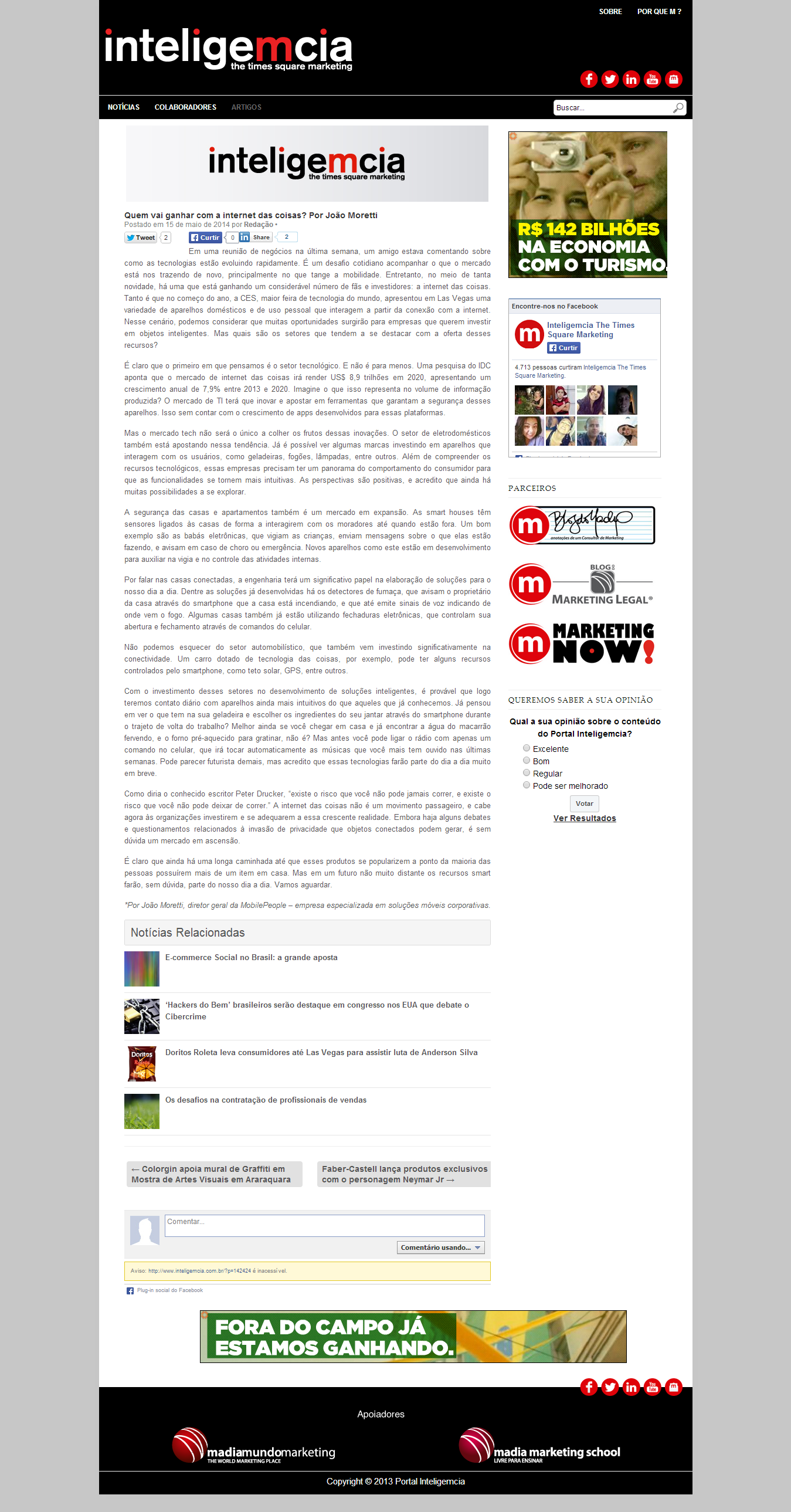 15/05/2014 – Portal inteligemcia – Quem vai ganhar com a internet das coisas (Artigo João Moretti)