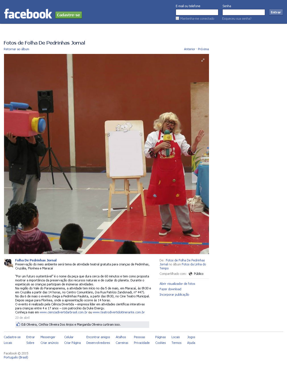 23/04/2015 – Prefeitura Municipal do Rancho Alegre – Preservação do meio ambiente é tema de atividade teatral gratuita para crianças de SP e PR (Release)