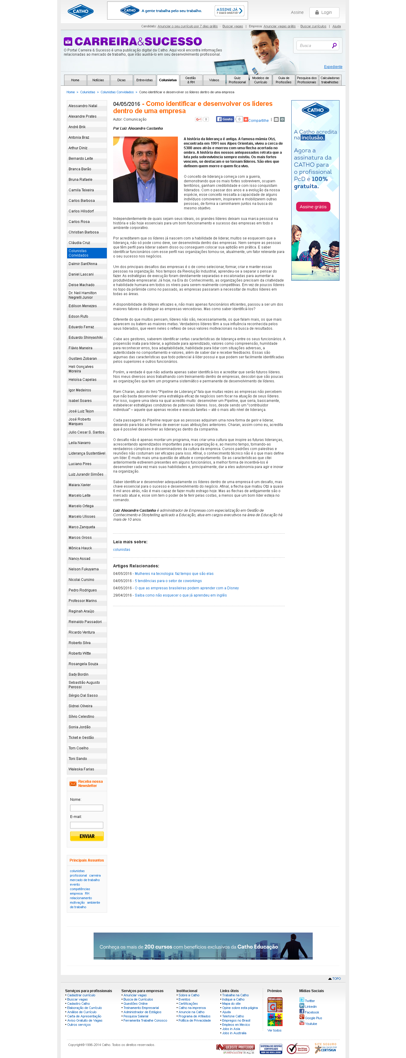 04/05/2016 – Carreira e Sucesso – Como identificar e desenvolver os líderes dentro de uma empresa (Artigo )